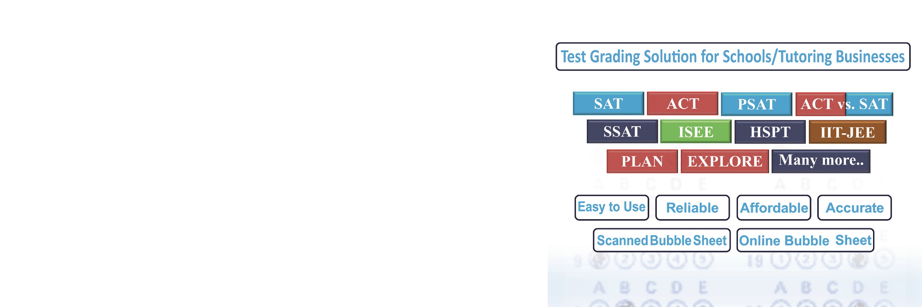 Smart Bubblesheets to Analyze and Process ACT, SAT, PSAT, HSPT, ISEE, and many more